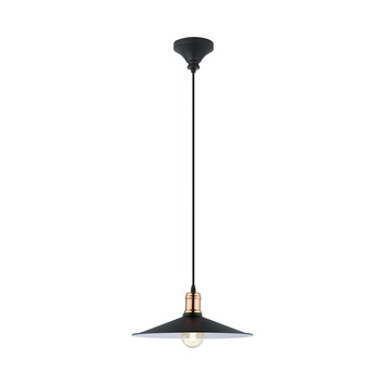 De Eglo Bridport hanglamp is specifiek ontworpen om uitsluitend te worden gebruikt met een E27 lichtbron. Deze hanglamp heeft een prachtige zwart, kopere kleur, waarbij de onderkant van de lampenkap in een zacht, witte tint is uitgevoerd. Dankzij de ronde vorm van de lampenkap wordt er een aangename sfeer gecreëerd en wordt de ruimte goed verlicht. Tijdens de installatie van de lamp is het mogelijk om de hoogte naar eigen wens in te stellen. De hanglamp heeft een diameter van 36 cm.