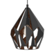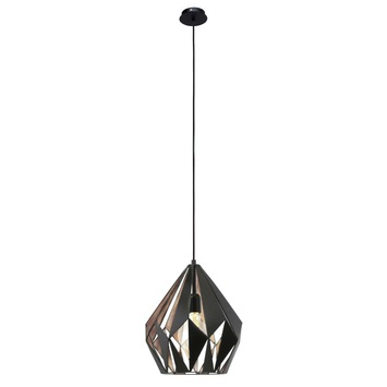 De Eglo hanglamp Carlton is speciaal ontworpen voor gebruik met een E27 lichtbron. Vervaardigd uit metaal, combineert deze hanglamp koper- en zwartkleurige elementen. De lamp bestaat uit één verstelbaar lichtpunt, die je op verschillende lengtes naar eigen voorkeur kunt instellen. De hanglamp heeft een diameter van 31 cm. De lampenkap heeft een druppelvorm en bevat openingen op bepaalde plekken. Aangezien de lichtbron niet is inbegrepen, heb je de vrijheid om zelf een dimbare lichtbron te kiezen. Deze lichtbron kan vervolgens gedimd worden met behulp van een externe dimmer.