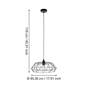 De Eglo hanglamp Carlton 2 is speciaal ontworpen voor gebruik met een E27 lichtbron. Deze hanglamp is vervaardigd uit metaal en is volledig uitgevoerd in zwart. De hanglamp heeft een diameter van 45,5 cm. Omdat de lichtbron niet is inbegrepen bij deze Hanglamp Carlton 2, heb je de mogelijkheid om zelf te kiezen voor een dimbare lichtbron. Deze kan vervolgens worden gedimd met behulp van een externe dimmer. De hanglamp van Eglo bezit een antiek aandoende uitstraling, wat resulteert in een klassiek element binnen het interieur.