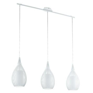 De Eglo hanglamp Razoni wit 3-lichts is een traditionele hanglamp die thuis past in veel hedendaagse interieurs en is exclusief voor de E27 lichtbron. De lampenkappen zijn van glas en hebben weg van een druppelvorm. De lengte van de snoeren kan je naar eigen wens aanpassen. De hanglamp heeft een afmeting van 99x19x110 cm