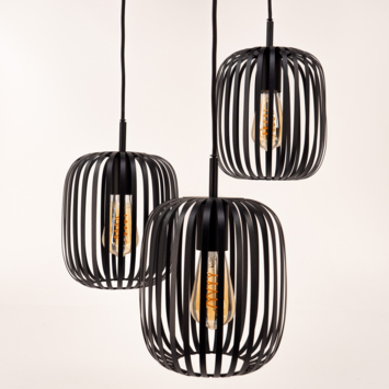 Ontdek de Romazzina ronde hanglamp, een prachtig ontwerp bestaande uit drie ronde lampenkappen vervaardigd van platte metalen strips in een zwarte kleur. Deze unieke lampenkappen zweven op verschillende hoogtes aan een elegant zwart textiel snoer, wat een speels en dynamisch effect creëert. De metalen strips werpen boeiende patronen van licht en schaduw op de omringende oppervlakken zodra de lamp wordt ingeschakeld. Met zijn zachte, ballonvormige lampenkappen is de Romazzina hanglamp een tijdloze toevoeging aan moderne interieurs. Of het nu boven een keukeneiland, in de woonkamer, of boven een lange eettafel hangt, deze lamp biedt een eigentijds designaccent voor elke ruimte. Let op: de afgebeelde lichtbronnen zijn niet inbegrepen. De lamp is compatibel met E27 fittingen, waardoor je vrij bent om je favoriete lampen te kiezen die passen bij je stijl en voorkeuren."