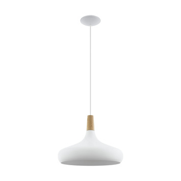 De Eglo hanglamp Sabinar is exclusief voor de E27 lichtbron. De strakke vorm van de hanglamp maakt hem toepasselijk in verschillende stijlen huizen. De diameter van de lampenkap is 40 cm. De lengte van de hanglamp kan tot 110 cm hoogte versteld worden. De lamp is geheel wit met houtkleurige details. Omdat bij de hanglamp de lichtbron niet wordt meegeleverd, kan jezelf kiezen voor een dimbare lichtbron. Met een externe dimmer kan je deze vervolgens dimmen.