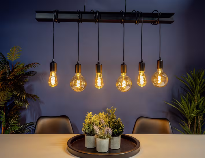 Wij hebben onze metalenbalk (portel) tijdens de verbouwing in het zicht laten zitten en zwart geschilderd waardoor deze lamp super mooi in ons interieur past. Doordat de kabels lang genoeg zijn kan je de lamp op een unieke manier laten opvallen in je interieur. Door de lampen te verstellen van hoogte kan je om de zo veel tijd veranderen waardoor deze opnieuw een andere look geeft.