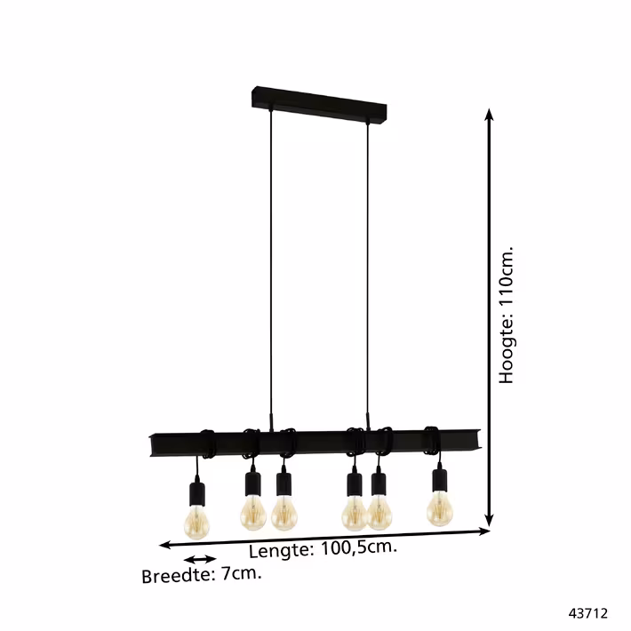 Eglo hanglamp Townshend balk 6-lichts zwart