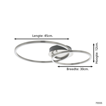 De plafondlamp PALMAVES 1 CCT-LED van metaal in staallook heeft twee ronde verlichtingselementen van verschillende grootte. De achter de witte plastic kapjes geïntegreerde LED's kunnen met de meegeleverde afstandsbediening eenvoudig van functioneel wit licht aangepast worden naar aangenaam warm wit licht. Ook kun je deze plafondlamp dimmen of op een timer zetten via deze afstandsbediening. Dankzij het minimalistische ontwerp biedt deze plafondlamp moderne verlichting in elke ruimte, of het nu gaat om een keuken, woonkamer, slaapkamer, hal of eetkamer.