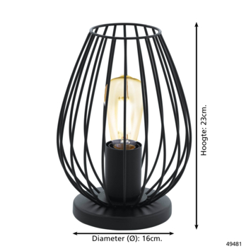 Deze industriële Newtown tafellamp van Eglo, is designvolle lamp geschikt voor op het nachtkastje of in de woonkamer als decoratie. Deze lamp is gemaakt van metaal en mooi afgewerkt met een zwarte kleur. De verlichtingsbron bevat een E27 fitting en valt onder beschermingsklasse IP20. Deze lamp wordt verkocht zonder lichtbron. Je kunt zelf kiezen welke lichtkleur jij in jouw interieur wilt hebben. Als je kiest voor een LED lichtbron, bespaar je meer op je verlichtingskosten. De lichtbron heeft een maximale wattage van 60 watt. kort gezegd, de Newtown tafellamp van Eglo is een prettige verlichtingsbron voor in de woonruimte.