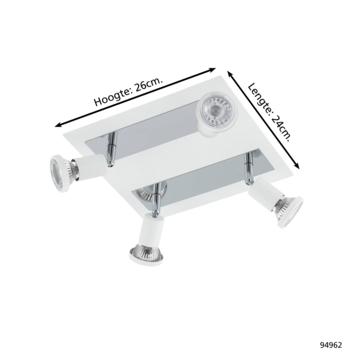 De EGLO opbouwspot Sarria wit chroom 4-lichts is een stijvolle en moderne plafondlamp. Hierdoor past de lamp goed in elk modern interieur. De lamp wordt geleverd inclusief vier GU10 LED lichtbronnen van 5 watt.