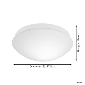 De EGLO wand- en plafondlamp Bari-M is geschikt voor de badkamer en heeft een diameter van 27,5 cm. Deze lamp is gemaakt van kunststof en is afgewerkt in de kleur wit. En is voorzien van E27 fitting.