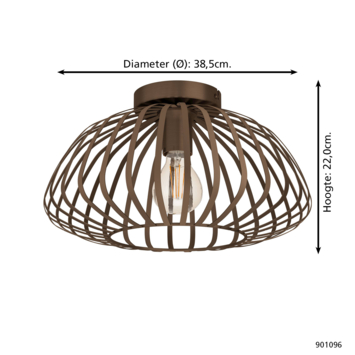 De Eglo plafondlamp Espinal is is gemaakt van bronskleurig staal. De lamp heeft een E27-fitting waarvoor de lichtbron los verkrijgbaar is. De fitting is geschikt voor lichtbronnen met een maximaal vermogen van 40 watt. De plafondlamp is 22 cm hoog en heeft een diameter van 38,5 cm. Deze plafondlamp zorgt voor een mooi effect in je woonkamer, keuken of hal.