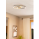 De plafondlamp LOMALTAS ZIGBEE CONNECT CCT-LED van zwart metaal heeft twee ronde verlichtingselementen en een decoratieve houten achterplaat. De achter de witte plastic kapjes geïntegreerde LED's kunnen via een gratis app of met een optionele afstandsbediening eenvoudig van functioneel wit licht aangepast worden naar aangenaam warm wit licht. Ook kun je deze plafondlamp dimmen of programmeren via de App. Daarnaast is deze lamp bedienbaar via de bekende Voice control devices (Alexa, Google assistent). Dankzij het minimalistische ontwerp biedt deze plafondlamp moderne verlichting in elke ruimte, of het nu gaat om een keuken, woonkamer, slaapkamer, hal of eetkamer.