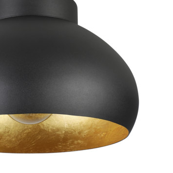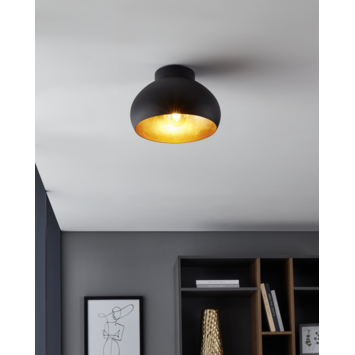 De plafondlamp van Eglo uit de serie Mogano, is gemaakt van metaal en heeft een zwarte kleur aan de buitenkant en een goude kleur aan de binnenkant. De lamp bevat een E27 fitting. Dit wordt ook wel de normale fitting genoemd. Deze fitting past in veel armaturen. De beschermingsklasse van deze verlichtingsbron is IP20. Dit betekent dat deze lamp beschermd is tegen stof. De lamp heeft een mooie uiterlijk wat mooi past in het interieur. Kortom, de Eglo plafondlamp is een prettige verlichtingsbron voor in het woonvertrek.