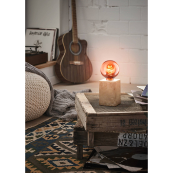 Simpel maar mooi. Het is een betonnen lampvoet maar mooi glad afgewerkt. De kleur is warm grijs en er zit een lang snoer aan met schakelaar.