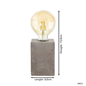 De Prestwick tafellamp van Eglo is een strakke lamp die mooi past op je nachtkastje, maar ook in de woon-of werkkamer is deze elegante lamp ideaal! De lamp is gemaakt van beton en heeft een grijze kleur. De verlichtingsbron bevat een E27 fitting. Deze past dus in veel armaturen. Dit product wordt exclusief lichtbron verkocht. Je kunt zelf de lichtkleur kiezen die jij wilt in de woonruimte. De lamp heeft een maximale wattage van 60Watt. Kortom, de Prestwick tafellamp van Eglo is een prettige verlichtingsbron.