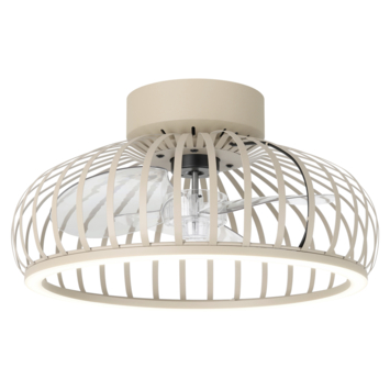 De EGLO ventilator met LED verlichting Mogano in zandkleur biedt een eigentijdse uitstraling met slimme functies. Deze plafondventilator heeft een diameter van 42,8 centimeter en is uitgevoerd met metalen flat-blades en transparante blades, wat zorgt voor een open en verfijnde look.