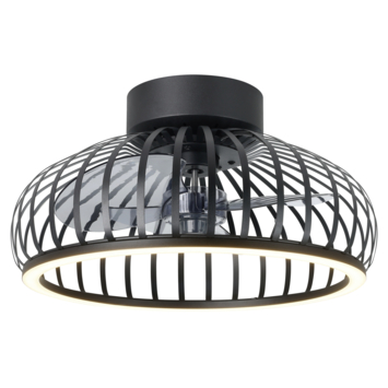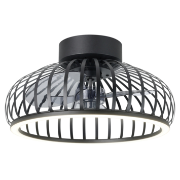 De EGLO ventilator met LED verlichting Mogano is een stijlvolle plafondventilator die design en functionaliteit samenbrengt. Het model heeft een diameter van 42,8 centimeter en is uitgevoerd in mat zwart, gecombineerd met metalen flat-blades in een smoke-afwerking.