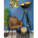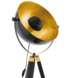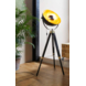 De zwarte, industriele Covaleda vloerlamp van Eglo, is gemaakt van hout en metaal. De lamp is gemaakt van verschillende materialen. De metalen scharnieren van de voet zijn gegalvaniseerd metaal. De binnenzijde van de bol/kap is voorzien van goudkleurig folie wat het structuur effect in de kap geeft.