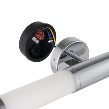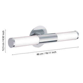 De Eglo wandlamp Palmera chroom is geschikt voor een maximaal wattage van 40 watt. De wandlamp beschikt over een IP44-beschermingsklasse waardoor deze in de badkamer kan worden gebruikt. De cilindervormige lamp past daarom mooi boven de spiegel van de wastafel. De lamp is gemaakt van staal in combinatie met melkwit glas en is afgewerkt in de kleur chroom. Dit geeft de Eglo wandlamp Palmera chroom een stijlvol uiterlijk waardoor deze goed past in elke moderne badkamer.