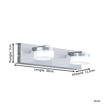 Deze Eglo Romendo 1 wandlamp is wit, chroom van kleur en gemaakt van RVS en gelakt glas. De Romendo 1 wordt inclusief LED lichtbron geleverd en is geschikt voor een maximaal wattage van 2 x 7,2W. De stijlvolle Romendo 1 heeft de beschermingsgraad IP44 waardoor deze lamp in de badkamer kan worden geplaatst. Deze lamp kan ook als wandlamp gebuikt worden, bijvoorbeeld bij de spiegel.