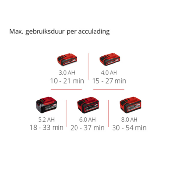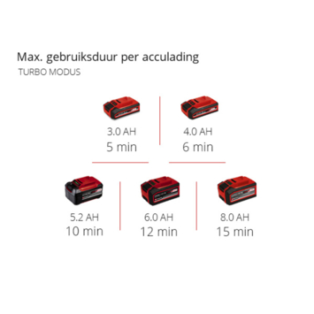 De Einhell accu bladblazer GP-LB 18/200 Li E-Solo is een uitstekende hulp rondom het huis, vooral bij de grove schoonmaakwerkzaamheden in de lente en de herfst. Als onderdeel van de Power X-Change productlijn kunnen alle accu's van deze productlijn met de bladblazer worden gecombineerd. Voor de werking is 1x 18 V accu vereist. De levering gebeurt zonder accu en lader, deze zijn apart verkrijgbaar, bijvoorbeeld als praktische starterset. Voor optimale prestaties wordt een 3.0 Ah PXC accu of groter aanbevolen. De accu bladblazer is aanzienlijk stiller dan benzinemodellen en door het lagere gewicht ook gemakkelijker te hanteren. De Balance-handgreep met softgrip zorgt ervoor dat u ergonomisch kunt werken en dat de bladblazer bijzonder comfortabel in de hand ligt. De accu bladblazer wordt aangedreven door een krachtige en duurzame koolborstelloze motor, die meer vermogen en een langere levensduur biedt in vergelijking met conventionele koolborstelmotoren. De axiale waaiertechnologie garandeert optimale prestaties, het maximale blaasvermogen wordt geactiveerd met de turboschakelaar. De robuuste metalen ring op het uiteinde van de blaasbuis dient als stootbescherming en garandeert een lange levensduur van de blaasbuis. De elektronische toerentalregeling is uitgerust met een handige LED-indicatie met meerdere niveaus. De afneembare blaasbuis kan zonder gereedschap worden gemonteerd. De accu bladblazer wordt geleverd met een geïntegreerde wandhouder, zodat deze eenvoudig en compact kan worden opgeborgen.