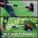 Dankzij de veelzijdige motorkop, die +/- 90° kan draaien en vijf keer kan kantelen, is het eenvoudig om zelfs de lastigste klussen aan te pakken, zoals verticaal trimmen of het strak afwerken van gazonranden. En maak je geen zorgen over je favoriete bloemen en sierplanten; met de slimme "Flowerguard" blijven ze perfect beschermd.