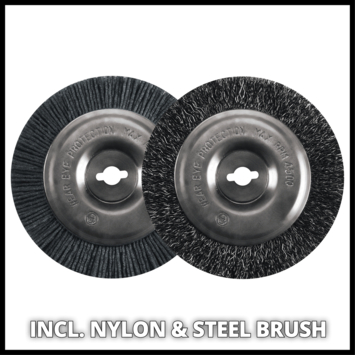 - Geschikt voor het reinigen van voegen en bestrating; geleverd met vervangbare nylon- en staalborstel (10 mm).
