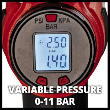 - Maximale druk van 11 bar: eenvoudig instellen met digitale drukweergave