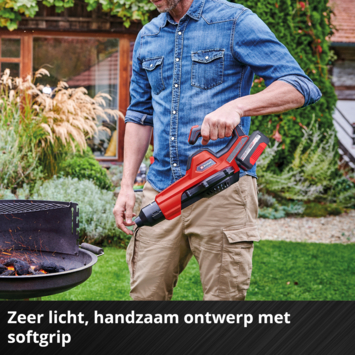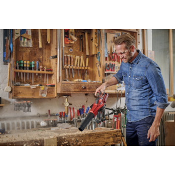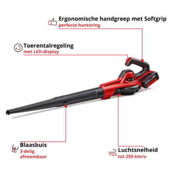 Breng orde in de tuin met de Einhell universele accu blazer GE-UB 18/250 Li E, die ultieme draadloze vrijheid biedt. Deze veelzijdige blazer maakt deel uit van de Power X-Change productlijn, waarbij je een 18 V accu kunt gebruiken die compatibel is met meer dan 200 machines van Einhell, of je nu in de tuin werkt of in de werkplaats. De meerdelige blaasbuis biedt veelzijdige toepassingen: gebruik de lange blaasbuis als bladblazer, de middelgrote buis als werkplaatsblazer en de korte precisieblaasbuis als barbecueaansteekhulp. Dankzij de elektronische toerentalregeling kun je de blaasprestatie naar behoefte aanpassen, terwijl de LED-indicator het ingestelde toerental in één oogopslag toont. De softgrip zorgt voor comfortabel gebruik en de geïntegreerde wandhouder maakt opslag eenvoudig. Voor de beste prestaties wordt een accu van 2,5 Ah of hoger aanbevolen. De Einhell GE-UB 18/250 Li E wordt geleverd met een 4.0 Ah accu en oplader, zodat je direct aan de slag kunt. Optimaliseer je werkzaamheden met deze krachtige en veelzijdige accu blazer.