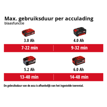 Voor extra comfort tijdens het gebruik is de bladblazer/-zuiger voorzien van een extra handgreep en een comfortabele draagriem, en de grote wielen aan de zuigbuis zorgen ervoor dat je makkelijk over oneffen terrein kunt bewegen. De geïntegreerde wandhouder maakt het eenvoudig om de bladblazer/-zuiger op te bergen, wat je werkruimte netjes en georganiseerd houdt. Let op: de bladblazer wordt geleverd zonder accu of lader, deze moeten dus apart aangeschaft worden.