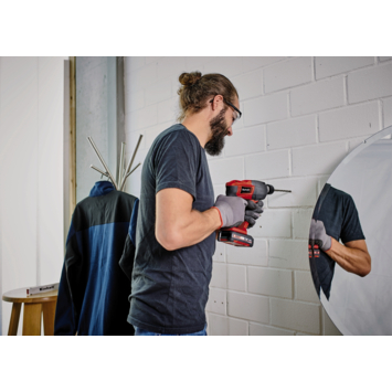 De accuboorhamer TE-HD 18 Li Solo is een robuuste en veelzijdige krachtpatser voor schroef- en boorwerkzaamheden dankzij de extra krachtige hamerfunctie en onafhankelijkheid van het stroomnet. Dankzij het pneumatisch slagmechanisme is een goede voortstuwing in metselwerk en beton mogelijk. Dankzij de ergonomische handgreep met softgrip kan de boorhamer altijd comfortabel en veilig worden gehanteerd. De praktische snelstopfunctie tegen ongewenst uitlopen van boren en de heldere LED-verlichting voor optimale verlichting van het werkgebied zorgen voor nog meer gebruikscomfort. Bovendien kunnen conventionele boren voor beton snel en zonder gereedschap worden verwisseld op de automatische SDS-Plus boorhouder.