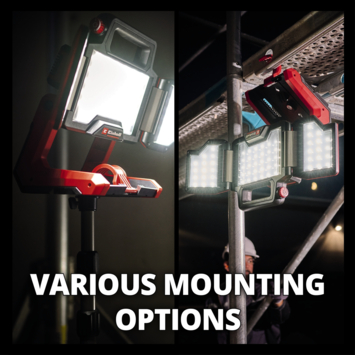 De draaibare lampkop en de verstelbare lichtpanelen maken het mogelijk om grote oppervlakken tot 270° te verlichten. Het gebruiksgemak wordt verder verhoogd door de handgreep met softgrip en de praktische ophanghaak voor opslag. Houd er rekening mee dat de accu en lader apart moeten worden aangeschaft. Deze lamp biedt je alles wat je nodig hebt voor een goed verlichte werkplek.