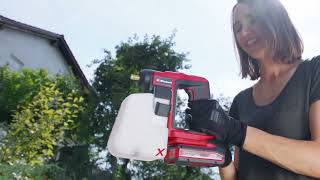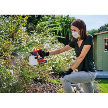 De Einhell accu drukspuit GE-WS 18/10 Li-Solo is onderdeel van de krachtige Power X-Change productlijn, waarin alle accu's, opladers en systeemmachines flexibel met elkaar kunnen worden gecombineerd. De drukspuit ondersteunt bij het gelijkmatig verspreiden van vloeibare mest, plantenbeschermings- en onkruidverdelgingsmiddelen in je tuin. Bovendien kan het spuitapparaat in combinatie met vloeibare desinfectiemiddelen worden gebruikt om diverse oppervlakken kiemvrij te reinigen. De drukspuit is uitgerust met een automatische pomp die 1,3 bar genereert en hiermee max. 9,6 liter per minuut verpompt. Een handmatige drukopbouw door inspannend pompen met de hand is niet nodig. De compacte, transparante tank bevat max. 1 liter vloeistof. Door de geïntegreerde schaalverdeling is het vulpeil altijd herkenbaar. Door de grote beugels kun je de tank eenvoudig openen, sluiten en uit het apparaat nemen. Dankzij het slanke, ergonomische design en speciale softgrip-vlakken ligt de 0,6 kg lichte en compacte accu tuinspuit prettig in de hand. Het messing spuitstuk kun je afzonderlijk instellen om de spuitstraal te regelen. De accu drukspuit GE-WS 18/10 Li-Solo wordt geleverd zonder accu en oplader. Deze zijn apart verkrijgbaar, bijvoorbeeld als handige starterset.