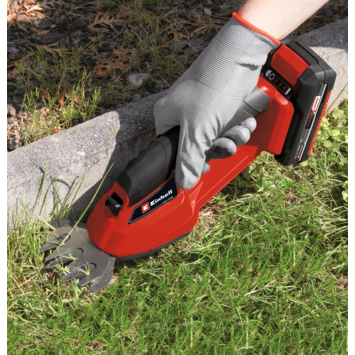 De Einhell GE-CG 18 Li Solo Accu Gras- en Heggenschaar is een ideale machine voor het onderhouden van je tuin. Gebruik de machine onder meer voor het bijwerken van kleine struiken en heggetjes, knip het gazon aan de zijkant kort of onderhoud het gazon op lastig te bereiken plaatsen voor een grasmaaier. Deze machine maakt deel uit van de Power-X-Change productlijn van Einhell. Een lange levensduur van deze accu gras- en heggenschaar wordt bevorderd door de metalen tandwielaandrijving. Deze zorgen voor een minimale slijtage, waardoor de machine lang mee gaat. Om een optimaal snoeiresultaat te kunnen behalen, beschikt de machine over laser en diamant geslepen snijbladen. Standaard wordt er een gras- en heggenschaar snijblad met de machine meegeleverd, zodat je direct aan de slag kan gaan. Met de grasschaar kun je een knipbreedte van 100 mm bereiken. De heggenschaar levert een snoeibreedte van 200 mm en kan door takjes van maximaal 8 mm komen. De tanden op de heggenschaar staan op 8 mm afstand van elkaar. Aan de bovenzijde van de machine zit een softgrip handgreep, waarmee de machine stevig en comfortabel in de hand ligt. De softgrip handgreep biedt een grote mate van grip en absorbeert daarbij een deel van de trillingen tijdens het gebruik van de machine. Het is mogelijk om zonder het gebruik van extern gereedschap te wisselen van de heggenschaar naar de grasschaar. Zo kun je snel schakelen tussen beide functies om het onderhoud van je tuin snel te kunnen hervatten. Voor gebruik heb je 1x 18 V Power X-Change accu nodig. Geleverd zonder Power X-Change accu en lader (apart verkrijgbaar).