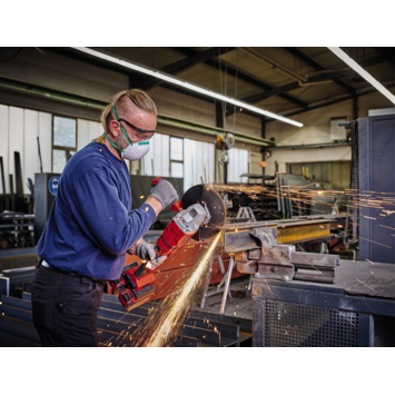 - Krachtige prestaties: Met TWIN-PACK technologie en een koolborstelloze motor biedt deze haakse slijper het vermogen van een 2200 W snoerloos model