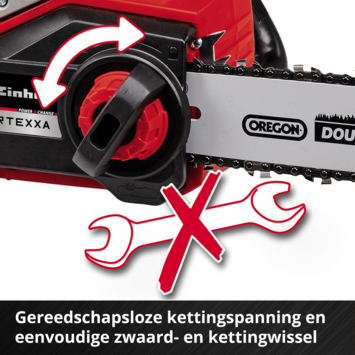 - Gereedschapsloze kettingspanning: eenvoudig en snel in te stellen zonder extra gereedschap