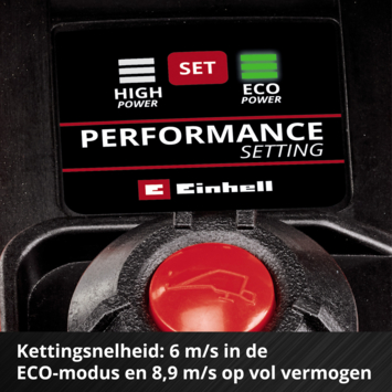 - Instelbare kettingsnelheid: keuze tussen vol vermogen (8 m/s) en Eco-modus (6 m/s) voor verlengde accu levensduur