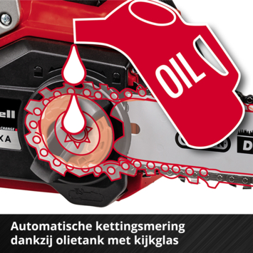 - Automatische kettingsmering: zorgt voor een soepel werkende ketting met een grote olievulopening
