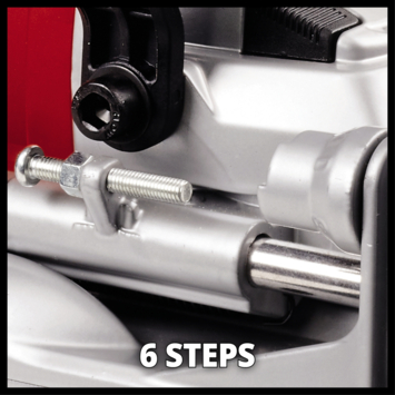 - Flexibele instellingen: traploze hoogte- en hoekinstelling tot 90°, en freesdiepte in 6 standen