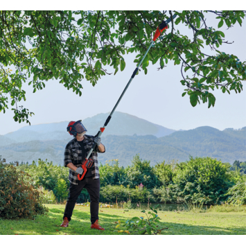 De Einhell GC-LC 18/20 Li T Solo accu Telescopische Kettingzaag is perfect voor het onderhouden en snoeien van bomen en hogere struiken. De kettingzaag is onderdeel van de Power X-Change productlijn. Met een snoeilengte van 200 mm en een snijsnelheid van 5,5 meter per seconde kunnen takken zonder problemen worden gesnoeit. De kettingzaag is voorzien van een OREGON kwaliteitszwaard en -ketting. De motorkop is 30° kantelbaar en in combinatie met de telescopische geleidesteel is de kettingzaag flexibel te gebruiken. De extra, met rubber beklede, handgreep is geschikt voor ergonomisch werken en biedt een stevige, veilige grip. De kettingzaag wordt geleverd inclusief draagriem. De robuuste metalen tandwielaandrijving zorgt voor een lange levensduur. De kettingzaag heeft een metalen klauwstop en een kettingvangbout voor meer veiligheid. De ketting van de kettingzaag wordt automatisch gesmeerd. Geleverd zonder Power X-Change accu en lader (apart verkrijgbaar).
