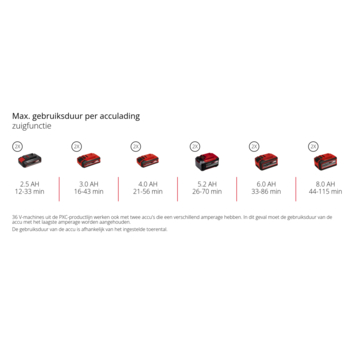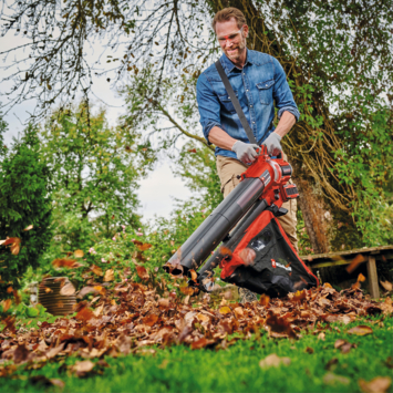 Met de Einhell accu bladblazer/-zuiger VENTURRO 36/240 is moeizaam bladeren ruimen verleden tijd! De krachtige 36 volt-accu bladblazer/-zuiger werkt volledige draadloos en beschikt bovendien over een geïntegreerde hakselaar. De accu bladblazer/-zuiger is onderdeel van de krachtige Power X-Change productlijn van Einhell, waarbij alle accu's, machines en opladers flexibel met elkaar kunnen worden gecombineerd. Dankzij de TWIN-PACK technologie die twee 18 volt accu's combineert en de koolborstelloze motor zijn meer vermogen en een langere levensduur gegarandeerd. Met een zuigvermogen van max. 740 m³ per uur verwijdert de slechts 4 kg zware bladblazer/-zuiger in een handomdraai ook zeer veel bladeren die dankzij de hakselfunctie tot een tiende van het oorspronkelijke volume worden verkleind voordat ze terechtkomen in de 45 liter grote opvangzak. De kwalitatieve opvangzak is voorzien van twee kijkvensters voor vulstandniveaucontrole en wordt met een kliksysteem snel en eenvoudig op de buis bevestigd. Via een schakelaar kan op ieder ogenblik zonder moeite worden gekozen tussen de zuig- en de blaasfunctie. Wanneer de accu bladblazer/-zuiger als bladblazer wordt gebruikt, blaast hij de bladeren door de extra boostfunctie weg met een blaassnelheid tot 240 km/u. Dankzij de elektronische toerentalelektronica met LED-display kunnen het zuig- en blaasvermogen individueel worden geregeld, tegelijkertijd wordt hiermee het geluidsvolume beïnvloed. De accu bladblazer/-zuiger kan dankzij de extra handgreep optimaal worden bediend met twee handen. Een comfortabele draagriem zorgt bovendien voor een optimale gewichtsontlasting. Dankzij twee grote wielen aan het uiteinde van de zuigbuis kan de accu bladblazer/-zuiger ook comfortabel over oneffen terrein worden bewogen, wat de rug ontlast. Dankzij de geïntegreerde wandhouder kan de bladblazer/-zuiger ruimtebesparend worden opgeborgen. Voor de moeiteloze reiniging is de bladblazer/-zuiger uitgerust met een reinigingsklep met veiligheidsschakelaar. De VENTURRO 36/240 wordt zonder accu's en zonder oplader geleverd.