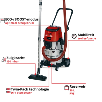 Einhell 2x18V nat-/droogzuiger TE-VC 36/30 Li S (zonder accu)199.00