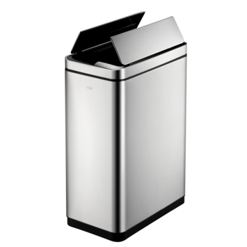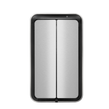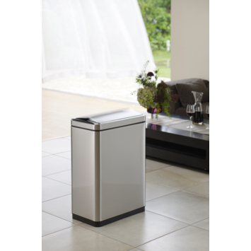 De EKO DeLuxe Recycle Phantom Sensor Afvalbak 20+20L is een stijlvolle afvalbak voor afvalscheiding van geborsteld RVS met fingerprint proof coating en twee kunststof binnenemmers (2x 20 liter). Het sensormechanisme voorzien van touch switch zorgt ervoor dat de afvalbak zowel d.m.v. een sensor als via de touch knoppen te openen en sluiten is. Door het slanke design uitermate geschikt voor smalle ruimten. Het geruisloos sluitend deksel van geborsteld RVS opent in twee delen waardoor het gemakkelijk onder werkbladen past. De sensor zorgt voor een hygiënisch gebruik van de afvalbak. Door het afneembare deksel is de afvalzak eenvoudig te wisselen. Werkt op 6 AA batterijen (niet inbegrepen).