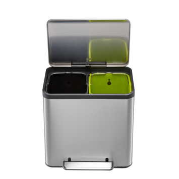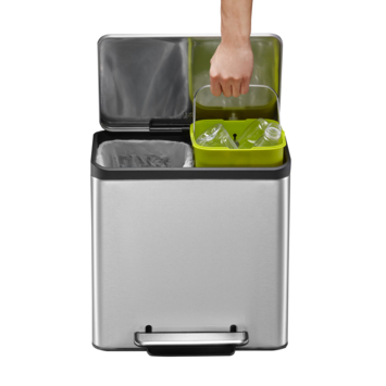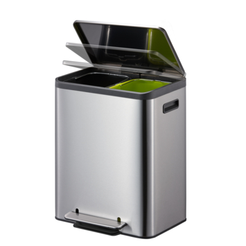 De EKO EcoCasa Pedaalemmer 15+15L is een rechthoekige pedaalemmer van geborsteld RVS met fingerprint proof coating en handige kunststof handgrepen. Voorzien van gedempt sluitend deksel en twee kunststof binnenemmers (15 + 15 liter) voor het scheiden van afval. De stay-open functie vergrendelt het deksel, voor het makkelijk schoonmaken van de afvalbak of wisselen van de afvalzak.