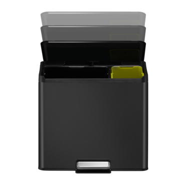 De EKO Essential Pedaalemmer 20+9L is een rechthoekige pedaalemmer voorzien van gedempt sluitend kunststof deksel en twee kunststof binnenemmers (20 + 9 liter) voor het scheiden van afval. De stay-open functie vergrendelt het deksel, voor het makkelijk schoonmaken van de afvalbak of wisselen van de afvalzak.