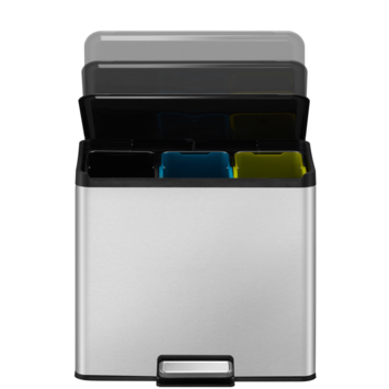 De EKO Essential Pedaalemmer 9+9+9L is een rechthoekige pedaalemmer van geborsteld RVS met fingerprint proof coating. Voorzien van gedempt sluitend kunststof deksel en drie kunststof binnenemmers (3x 9 liter) voor het scheiden van afval. De stay-open functie vergrendelt het deksel, voor het makkelijk schoonmaken van de afvalbak of wisselen van de afvalzak.