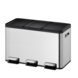 De EKO Essential Splitted Pedaalemmer 10+10+10L is een rechthoekige pedaalemmer van geborsteld RVS met fingerprint proof coating en voorzien van gedempt sluitende kunststof deksels. De drie pedalen geven afzonderlijk toegang tot de kunststof binnenemmers (3x 10 liter) voor het scheiden van afval. De stay-open functie vergrendelt het deksel, voor het makkelijk schoonmaken van de afvalbak of wisselen van de afvalzak.