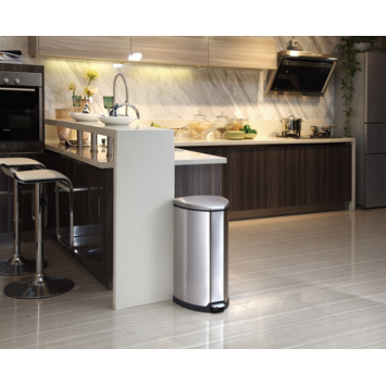 De EKO Grace Pedaalemmer 35L is een opvallende, driehoekige pedaalemmer voorzien van kunststof binnenemmer en gedempt sluitend deksel.