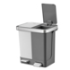 De EKO Hana Duo Recycle Pedaalemmer 10+10L is een afvalbak van kunststof bestaande uit twee kunststof binnenemmers, die afzonderlijk van elkaar via de pedalen toegankelijk zijn. Voorzien van gedempt sluitend deksel met rondom een metalen frame die de afvalzakken uit het zicht houdt. De zichtbare gekleurde binnenemmers maken afvalscheiding eenvoudig, zijn makkelijk uitneembaar en zorgen ervoor dat de pedaalemmer snel schoon te maken is.