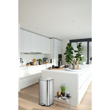 De EKO Stella is een vierkante pedaalemmer van geborsteld RVS die je leven een stuk makkelijker maakt. Het deksel sluit gedempt en blijft openstaan dankzij de stay-open functie, ideaal voor het schoonmaken of verwisselen van de afvalzak. Met een inhoud van 30 liter is deze pedaalemmer perfect voor de keuken of kantoor en het RVS-ontwerp met fingerprint proof coating zorgt ervoor dat hij altijd netjes blijft. De uitneembare kunststof binnen emmer maakt legen en schoonhouden eenvoudig, zodat je meer tijd hebt voor andere dingen. Ontdek deze stijlvolle pedaalemmer bij GAMMA.