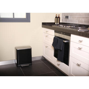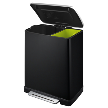 De EKO Recycle E-Cube Pedaalemmer 10+9L is een stijlvolle rechthoekige zwarte pedaalemmer met extra breed pedaal en 2 kunststof binnenemmers (10 en 9 ltr). Voorzien van gedempt mat RVS deksel. De stay-open functie vergrendelt het deksel, voor het makkelijk schoonmaken van de afvalbak of wisselen van de afvalzak.