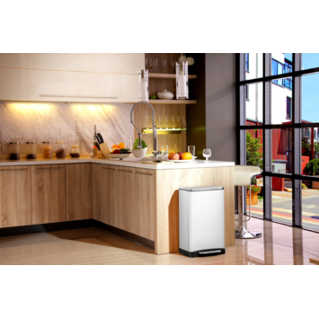 De EKO Recycle E-Cube Pedaalemmer 28+18L is een stijlvolle rechthoekige pedaalemmer met extra breed pedaal en 2 kunststof binnenemmers (18 en 28 ltr). Voorzien van gedempt deksel en stay-open functie. Aan de binnenzijde van het deksel is ruimte voor een carbonfilter om geurtjes te voorkomen.
